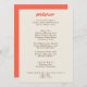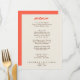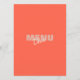 A colourful retro funky modern bright wedding dinner menu. Which features chic template design of boho vintage creamy background and black typography and hand written menu in orange . And bright back orange background. Perfect and matching with the whole suite.