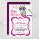 Invite guests with this customisable baby shower invitation. It features a lovely retro illustration of a bright tawny owl in bright colourful blue, yellow and red-orange and hot pink colours and floral patterns. This owl invitation is perfect for a fun, bright and girly baby shower. Personalise by adding your event details.