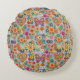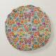 Retro colourful flowers pattern. L Grey BG Round Cushion