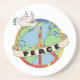 Retro Colourful Hand Drawn World Peace with Dove Coaster