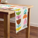 Feather your nest with this Retro Colourful Nests Table Runner! The design features a cream background with gold speckles and rows of wonderfully kitschy, colourful semi-circles resting on minimalistic, black branches. The semi-circles resemble fairy tale, bird's nests in shades of light blue, teal, turquoise, orange, pink, yellow, green, grey, and brown. The orange nests have a fun brick pattern and the brown nests feature a cartoon wood grain. The nest filled trees alternate between right-side up and upside down, which means this whimsical design even looks perfect when standing on your head. This pattern is reminiscent of a vintage mid century modern design. You're sure to enjoy our homage to the 1950s. Buy this today and be the coolest cat on your block.