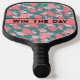 Get a little motivation with this inspirational pickleball paddle. "Win The Day" on the front and back in black vintage modern font that has a bit of a Gatsby vibe. But you can also change the text out for a different quick reminder or name or something else like 'Point' if you prefer. The brushstroke pattern features a mix of calming yet vibrant hues with blush pink, flamingo pink, turquoise, and a tiny subtle hint of purple. Contrasting with black stroke and font. Bright Colourful Pattern Pickleball Paddle