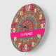 Retro Colourful Pink Mandela 70s Boho Large Clock