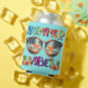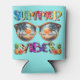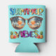 Retro Colourful Summer Vibes Can Cooler featuring sunglasses, beach, palm trees, sun, pineapples, and watermelons.