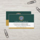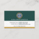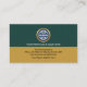 A retro column design with the colours of green, white and brown. You have a gold global logo at the top you can use alongside its business name. In the corresponding white layer lies your prestigious name and job title with the contact details in their respective buttons. A slogan caption option which you can change is at the base.