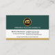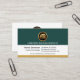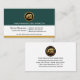 A retro column design with the colours of green, white and brown. At the top is a gold home landscape logo you can use with its business name underneath. In the corresponding white layer is your prestigious name and job title with the contact details in their respective buttons to the right. A slogan caption option which you can change is at the base.