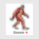 A legendary woodland figure strides through a dense forest of evergreen trees in this striking pop art comic panel. Rendered with bold black outlines and a vibrant palette of forest greens, the design utilises intricate halftone patterns to create depth and a classic vintage print aesthetic. This sticker captures the mystery of the wilderness with high-contrast styling and retro artistic flair, making it a unique statement piece for fans of folklore and comic book illustration.