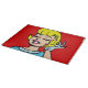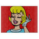 Yowza! This Retro Comic Strip Beauty Cutting Board features a lovely blonde gal with pink lips and dark lashes on a red background. One gloved hand is visible as she tosses her yellow hair like the flirt she is. See ya in the funny papers!
