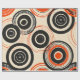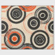This artwork features a striking pattern of concentric circles in varying sizes, arranged across a neutral cream background. The design incorporates bold black and vibrant orange hues, creating a strong visual contrast that immediately captures attention. The circles are layered and interconnected, with some lines appearing hand-drawn, adding a dynamic and slightly irregular feel to the composition. The repetition of circular forms and the retro colour scheme evoke a sense of mid-century modern design, giving the piece a timeless yet playful quality.