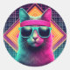 Retro Cool Cat Classic Round Sticker