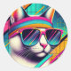 Retro Cool Cat Classic Round Sticker