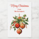 Bottle labels with a vintage style illustration. 3 red Christmas baubles surrounded by green holly and berries. Stylish retro design.