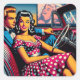 Retro Couple in Car at Drive In Movie Square Sticker