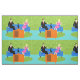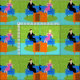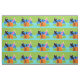 This Retro Couple with Cat Fabric features a cartoon couple trying to get cosy while watching television on a mid century modern, blue sofa. The cat, however, has other ideas. On one side of the sofa, there is a handsome man in a black suit with red tie. On the other side of the stylish couch, there is a beautiful, blonde woman in a form fitting, hot pink dress. Things would be going great if it weren't for the sleek black cat, which has laid claim to the centre sofa cushion. This 1960's style, minimalist art design is set in a stylish living room. The sofa's backdrop is a green, stone wall. On the aqua floor, there is a round, green shag rug, which matches the stone wall. At the forefront of the design, we see the back of an orange television set with rabbit ears, which seems to be playing the cat's favourite TV program.