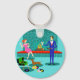 This Retro Couple with Dog Button Keychain looks like a scene out of a romantic comedy. The 1960s's style, minimalist art design features an attractive couple enjoying a romantic evening at home. The sophisticated room prominently features an aqua and teal brick fireplace with a bright red ledge. A beautiful, redhead woman wearing a bright, pink dress is perched on the ledge. She is enjoying a martini with a floating olive, a roaring fire, good music, and the company a tall, dark and handsome man. The man is wearing a blue suit and red tie. His martini glass is raised to toast his charming companion. In his other hand, he is holding a vinyl record album. At his feet, we see a most adorable dachshund wearing a red collar. The playful wiener dog is walking in the direction of a green record player with orange, spindle legs. On the floor, there is a colourful group of fun, eclectic, vinyl records. Cheers! Here's to the perfect evening at home.