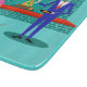 This Retro Couple with Dog Cutting Board looks like a scene out of a romantic comedy. The 1960s's style, minimalist art design features an attractive couple enjoying a romantic evening at home. The sophisticated room prominently features an aqua and teal brick fireplace with a bright red ledge. A beautiful, redhead woman wearing a bright, pink dress is perched on the ledge. She is enjoying a martini with a floating olive, a roaring fire, good music, and the company a tall, dark and handsome man. The man is wearing a blue suit and red tie. His martini glass is raised to toast his charming companion. In his other hand, he is holding a vinyl record album. At his feet, we see a most adorable dachshund wearing a red collar. The playful wiener dog is walking in the direction of a green record player with orange, spindle legs. On the floor, there is a colourful group of fun, eclectic, vinyl records. Cheers! Here's to the perfect evening at home.