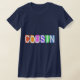 Retro-style COUSIN design with white text on colourful background squares. Text creates different effect on dark or light backgrounds. Change the style or colour to make this your own! Add text to the front or back. This makes a great gift idea for your cousin on her or his birthday, graduation or any other special day.