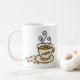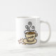 Ambiguous but curiously hysterical presidential twitter typo with retro cup of coffee and coffee bean graphic.