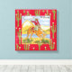 This retro cowboy personalised canvas is great for anyone who's a western lover! A rodeo style cowboy in a red shirt twirls his lasso in the centre of the design. There is a stream and mountain scene behind him. The art is bordered in a red frame with saguaro cactuses.
