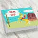 Say thanks with a western accent with this fun thank you card featuring a retro style illustration of a cowgirl on a horse in a western landscape with the message THANK YOU! written in the clouds. The inside of these folded cards is blank so that you can write your own message of thanks.