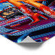 A beautiful and confident woman commanding a vintage space ship car. The vivid colors, bold energy, and vintage theme pay tribute to the thrilling imagination of midcentury book covers and movie posters.