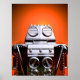 Cropped Vintage 3d rendered vintage toy robot with strong red backlighted background.