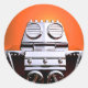 Cropped Vintage 3d rendered vintage toy robot with strong red backlighted background.