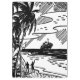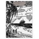 A black and white retro image of a cruise ship and two people waving from shore. Image from a 1940’s Vintage Printers Book (with no copyright).