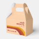 Classic vintage 70s retro colours with wavy curved striped lines wedding party favour box. Cool design with hippie colours cream, orange and red. Personalise it by adding the bride and groom name, wedding anniversary date, and a personal message.