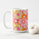 A lovely retro coffee mug with a pink hue and plenty of yellow and orange flowers! Perfect for a gift.