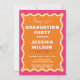 Retro Squiggle Wavy Pink Orange Photo Graduation Invitation