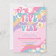 Celebrate your childs special day with this retro-inspired 5th birthday invitation featuring colourful pastel waves, cheerful daisies, butterflies, peace signs, and a smiling sun. Perfect for a groovy party theme, this playful design sets the tone for peace, love, and fun. Customise with your event details to create a unique keepsake that guests will adore. Ideal for kids birthdays, retro parties, and vibrant celebrations, this invitation blends nostalgic charm with modern flair to make your event unforgettable.