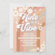 Celebrate your childs special day with this retro floral birthday invitation featuring playful daisies, hearts, butterflies, and peace signs in vibrant pink, peach, and brown tones. Perfect for a groovy 9th birthday party, this customizable invite blends nostalgic charm with modern fun. Personalize with your event details to create a unique keepsake guests will love. Ideal for kids parties, this design brings peace, love, and joy to every celebration.