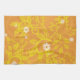 Retro Daisy and Yellow Filigree Over Orange Tea Towel