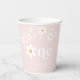 Retro inspired first birthday party cups with 70's style daisies and boho fonts and colours.