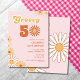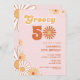 Retro Daisy Boho Orange Pink 50th Birthday Invitation