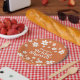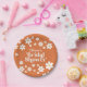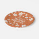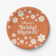 Retro bridal shower plates with boho daisy design in burnt orange.
