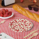 Retro Daisy Floral Pattern in Red and Cream Paper Plate