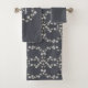 Decorate your bathroom with this grey floral towel set, This bath towel set features a white daisy floral pattern and your monogram. Personalised towel sets make thoughtful gifts for the bride to be or housewarming gift. Buy as shown or design your own, this towel set is fully customisable.