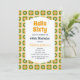 Green and yellow retro groovy daisy flower in chequered box pattern Birthday Invitation.