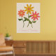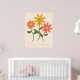This brightly coloured poster is sure to brighten any space. The original design of three daisy stems has a mid-century modern flair. The retro aesthetic will please discerning aficionados of the decor style. This is affordable art that you can frame or hang as it is. Bring sunshine to your space with this Flower Market poster.