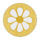 Cute retro-style big daisy flower in mustard gold, white, and yellow tones. Minimalist floral design; a bit of a throwback to the 60s.