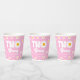 This is a Pink Retro Daisy Flower Two Groovy 2nd Birthday Party Paper Cups.