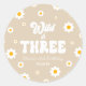 Retro Daisy Flower Wild & Three 3rd Birthday Party Classic Round Sticker