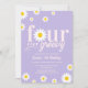 Retro Daisy Four Ever Groovy Purple 4th Birthday Invitation