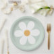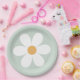 Retro inspired first birthday plates with 70's style daisies and boho fonts and colours.