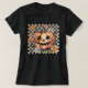 Retro Daisy Jack O Lantern Pumpkin Halloween Check T-Shirt