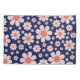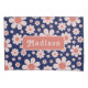 Cool retro 60s 70s vintage floral daisy pattern design in terracotta and on a navy blue background. Simple floral daisies pattern and easy to use template with custom cool groovy typography. Original artwork by artist Catherine Sweetman