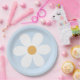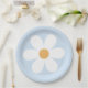 Retro inspired baby shower plates with 70's style daisies and boho fonts and colours.