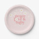Retro Daisy Pink boho Peace Love Baby Shower Paper Plate